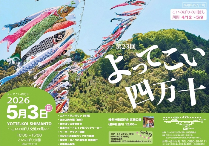 今年も、こいのぼり公園(十川)にて「よってこい四万十~こいのぼり交流の集い~」を開催いたします!