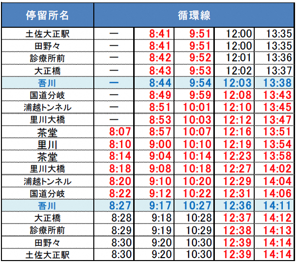 土佐大正駅~里川を運行しているコミュニティバス里川線について、路線バス「窪川~十和線」の再編に伴い、令和8年3月より吾川地域を運行する経路に変更します。